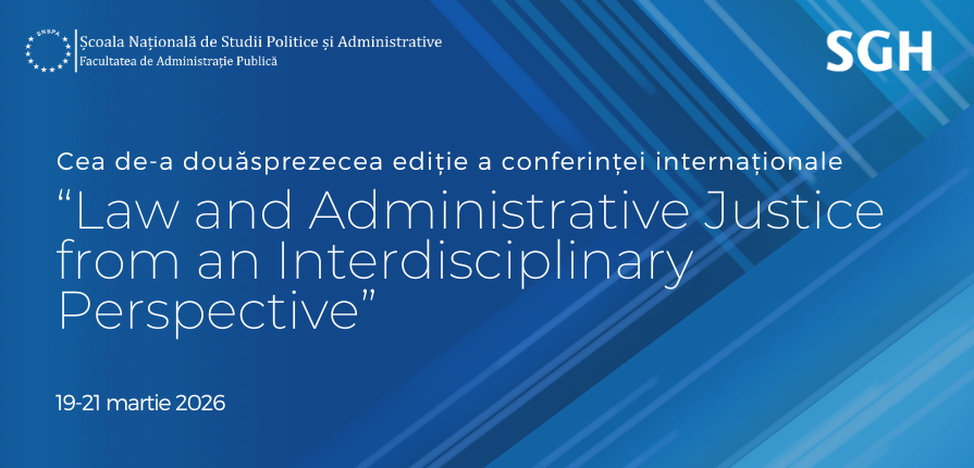 În perioada 19-21 martie 2026, Facultatea de Administraţie Publică (SNSPA) organizează, în parteneriat cu SGH Warsaw School of Economics, cea de-a XII-a ediţie a conferinţei internaţionale “Law and Administrative Justice from an Interdisciplinary Perspective”.