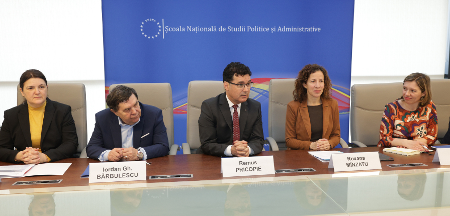 Marți, 31 martie 2026, vicepreședinta executivă pentru drepturi sociale și competențe, locuri de muncă de calitate și pregătire, Roxana Mînzatu, a efectuat o vizită de lucru la Școala Națională de Studii Politice și Administrative (SNSPA), în cadrul programului său oficial la București. Înaltul oficial european a fost primit de rectorul universității, prof. univ. dr. Remus Pricopie, președintele Senatului, prof. univ. dr. Adrian Curaj, și de membrii Consiliului de Administrație, în cadrul unei întâlniri axate pe rolul educației și al formării profesionale în agenda europeană.
